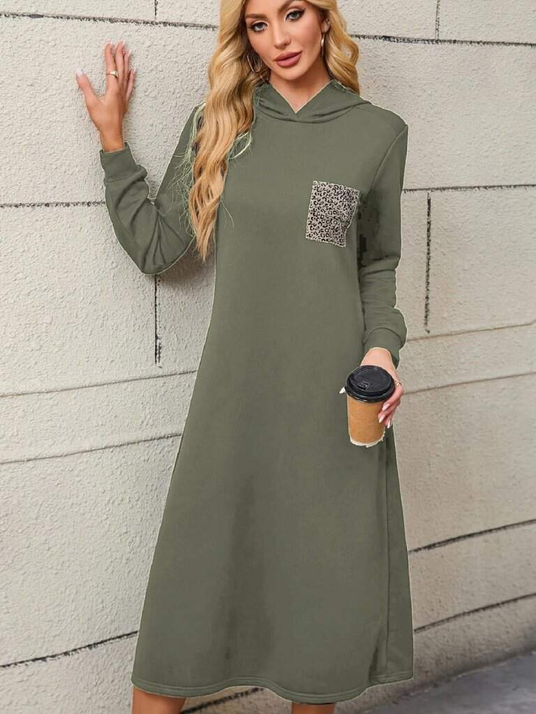 Kadın Uzun Kollu Kapşonlu Cep Detaylı Viskon Iki Iplik Maxi Elbise