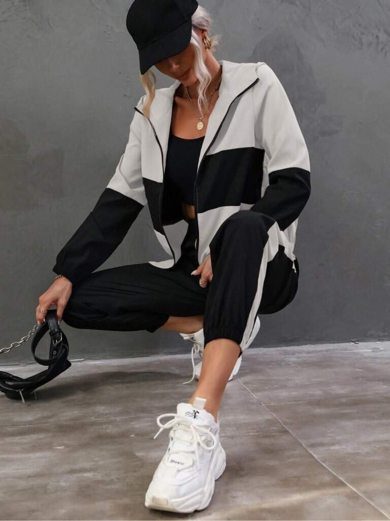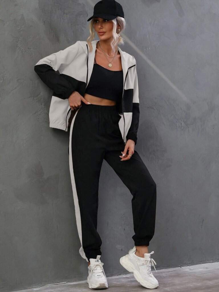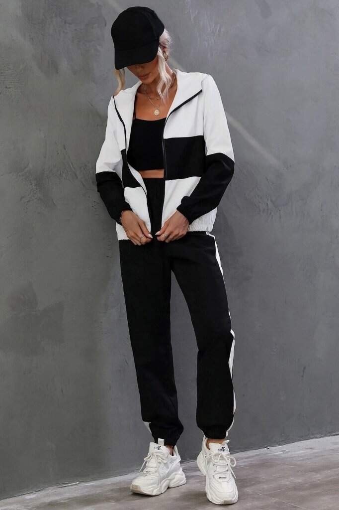 Kadın Uzun Kollu Kapşonlu önden Fermuarlı Viskon Iki Iplik Bluz Ve Pantolon Ikili Takım
