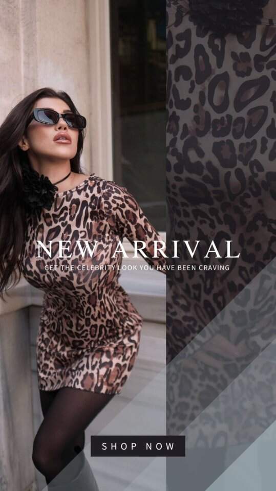 Kadın Uzun Kollu Kayık Yaka Leopar Baskılı Mini Elbise