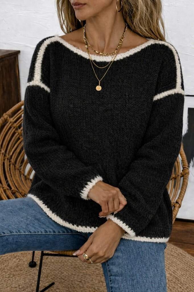 Kadın Uzun Kollu Kayık Yaka Triko Bluz