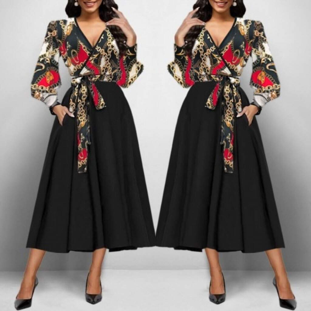 Kadın Uzun Kollu Kruvaze Yaka Dalgıç Krep Midi Boy Elbise