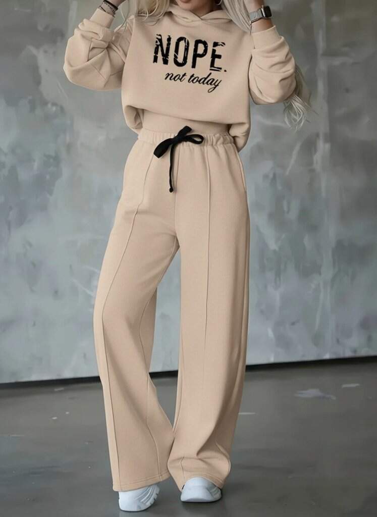 Kadın Uzun Kollu Nope Baskılı Beli Ribanalı Ikili Takım