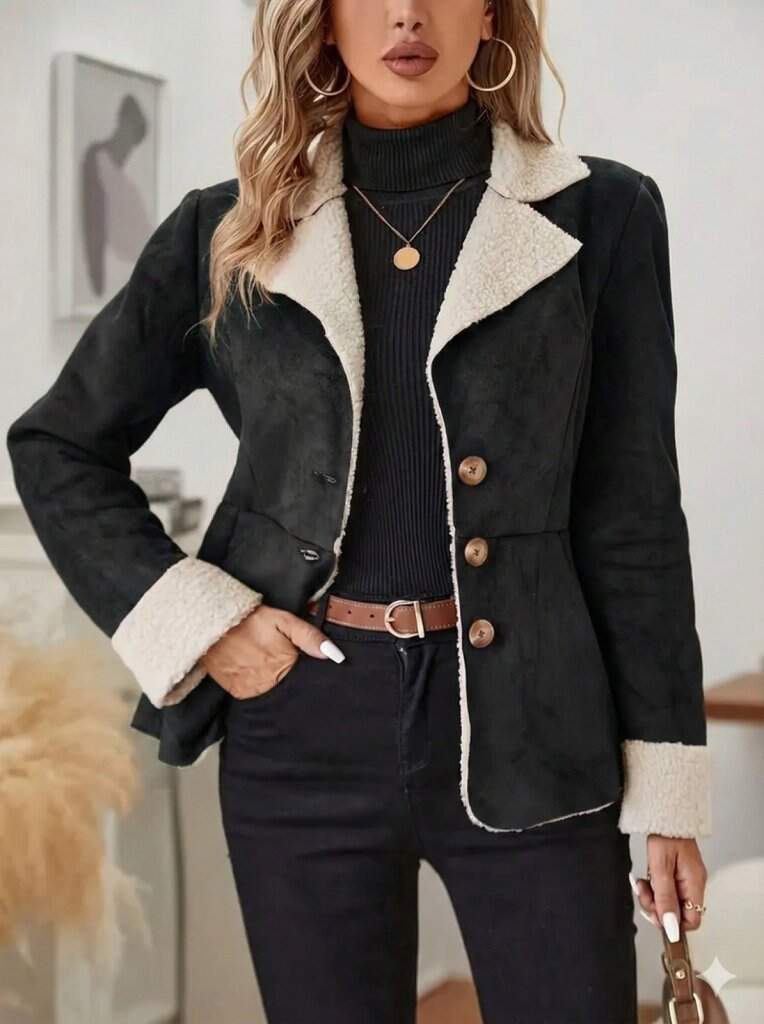 Kadın Uzun Kollu önden Düğmeli Cep Detaylı Kısa Süet Ceket