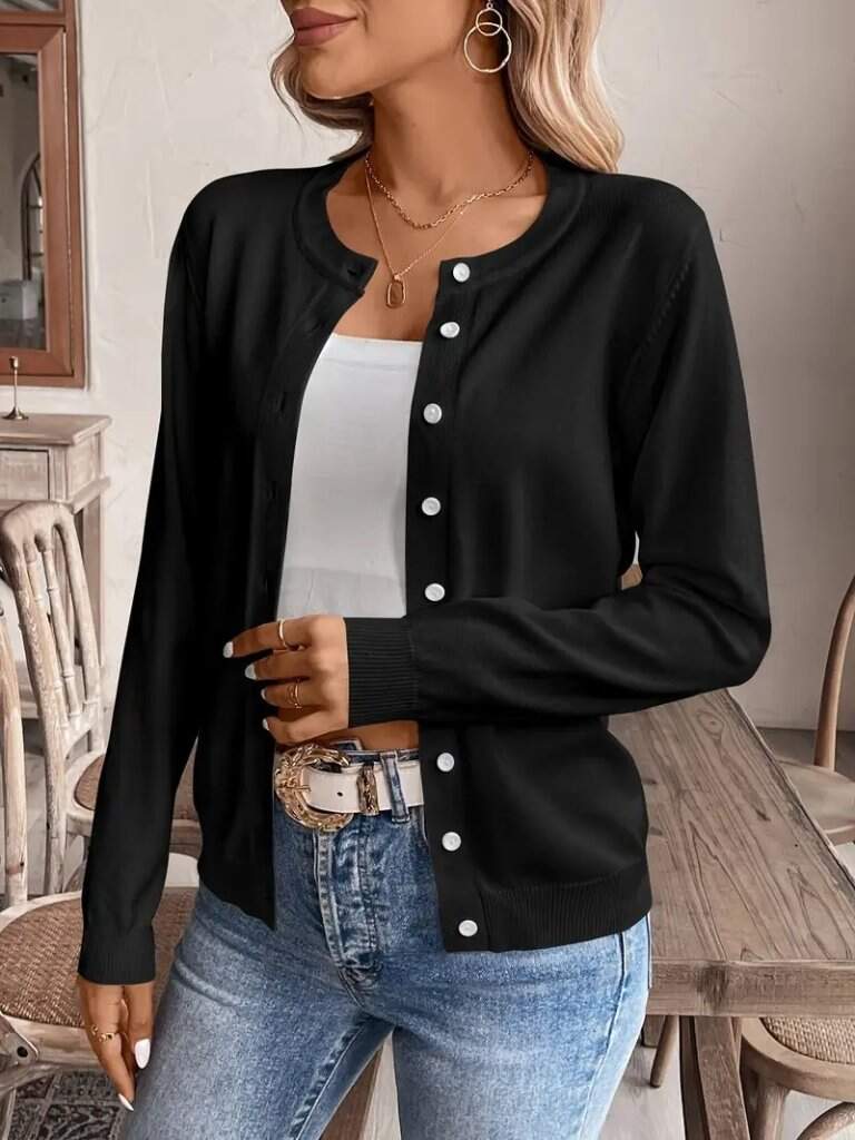Kadın Uzun Kollu önden Düğmeli Triko Ceket