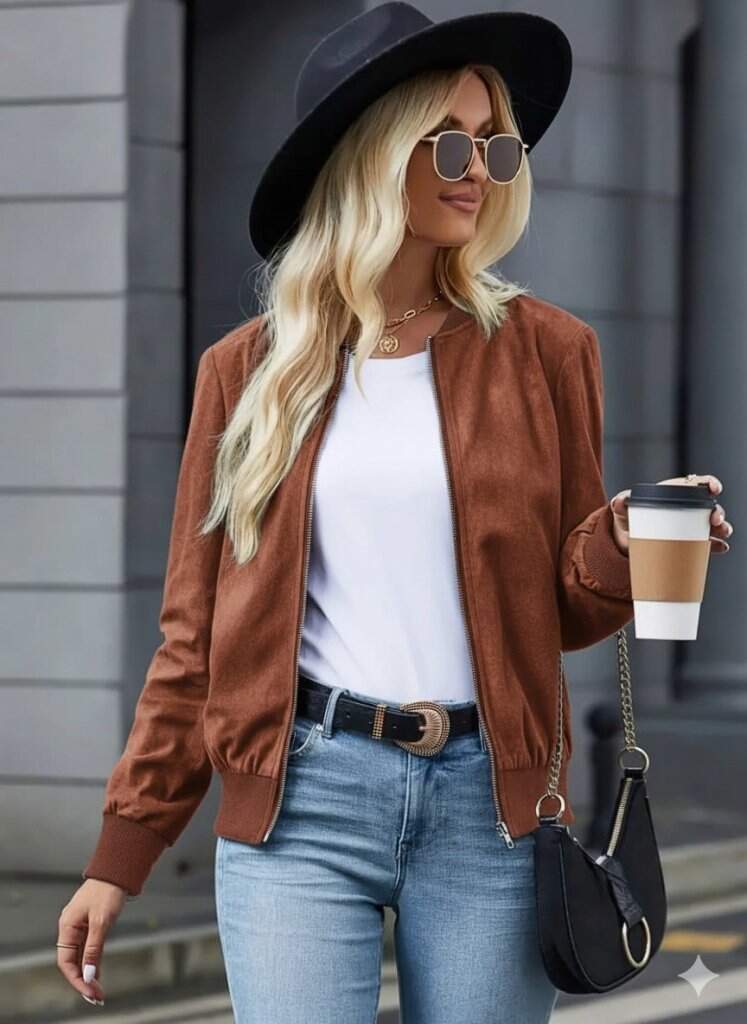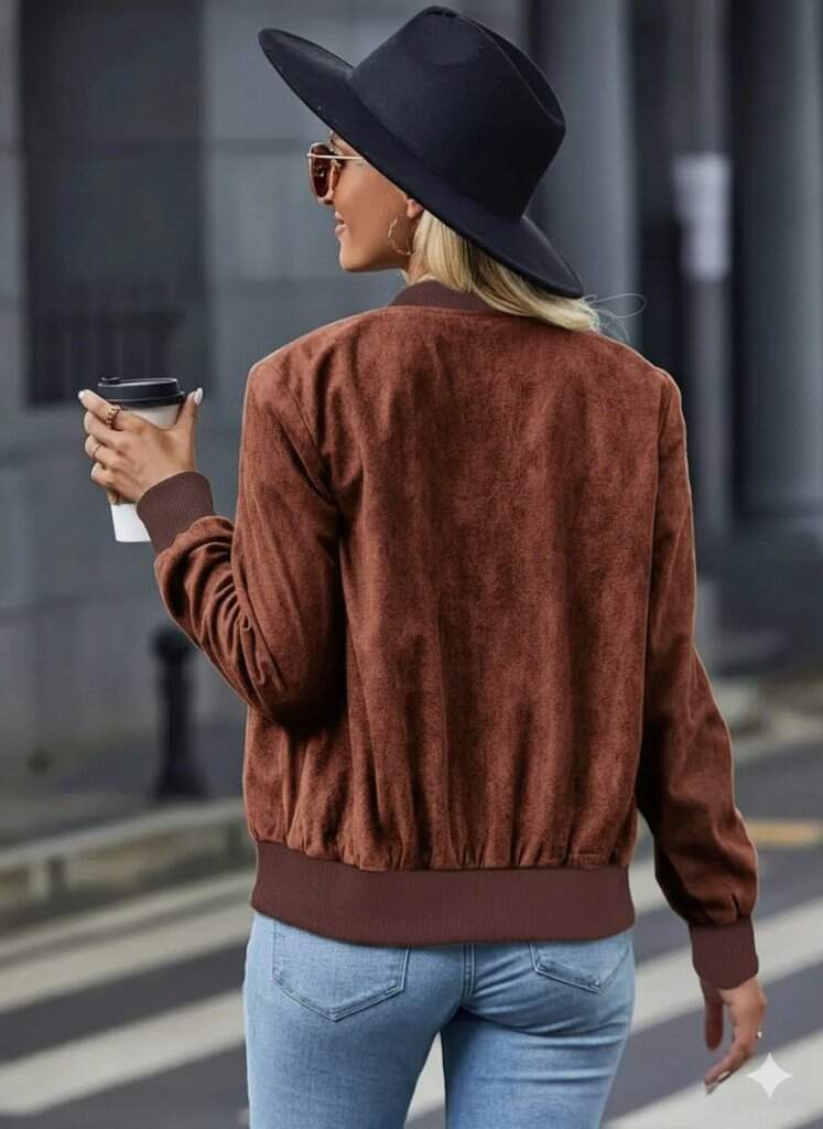 Kadın Uzun Kollu önden Fermuarlı Süet Ceket