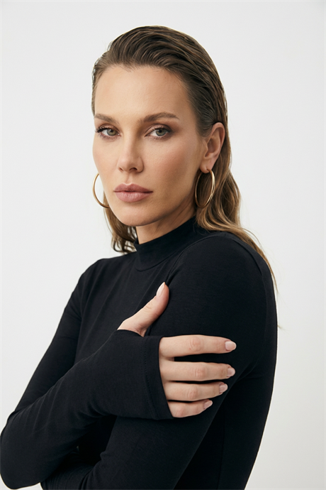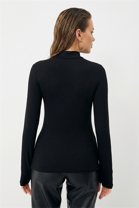 Balıkçı yaka tasarımı sade ve zarif bir görünüm kazandırır.