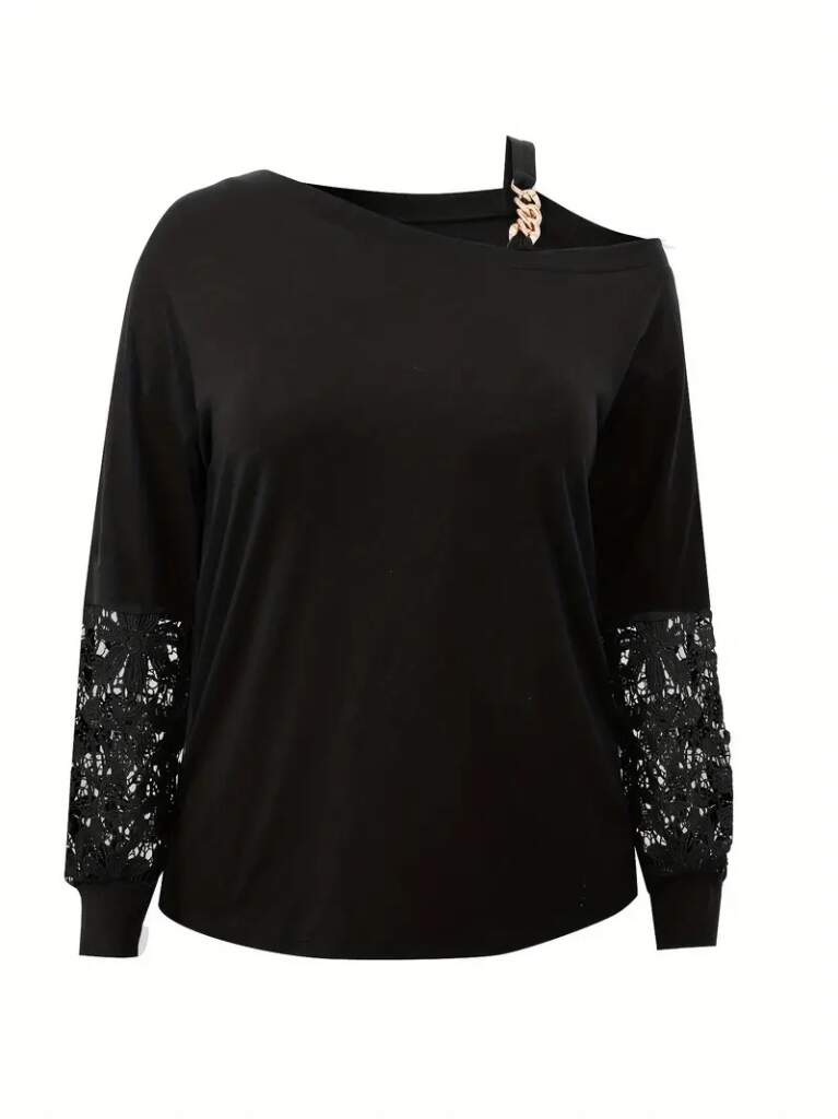 Kadın Uzun Kollu Tek Omuzu Açık Askılı Toka Ve Dantel Detay Viskon Iki Iplik Bluz