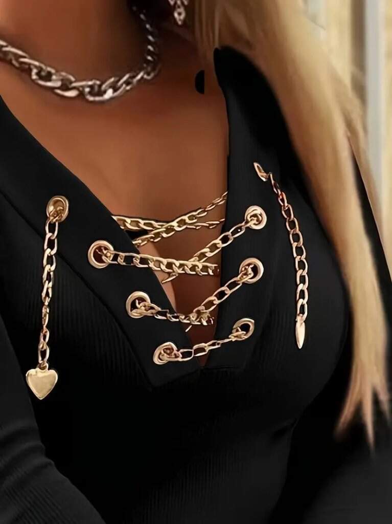 Kadın Uzun Kollu V çapraz Zincir Detaylı Kaşkorse Bluz