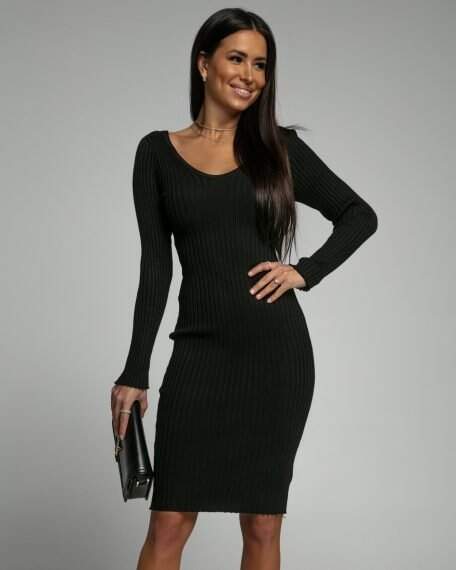 Kadın Uzun Kollu V Yaka Triko Elbise