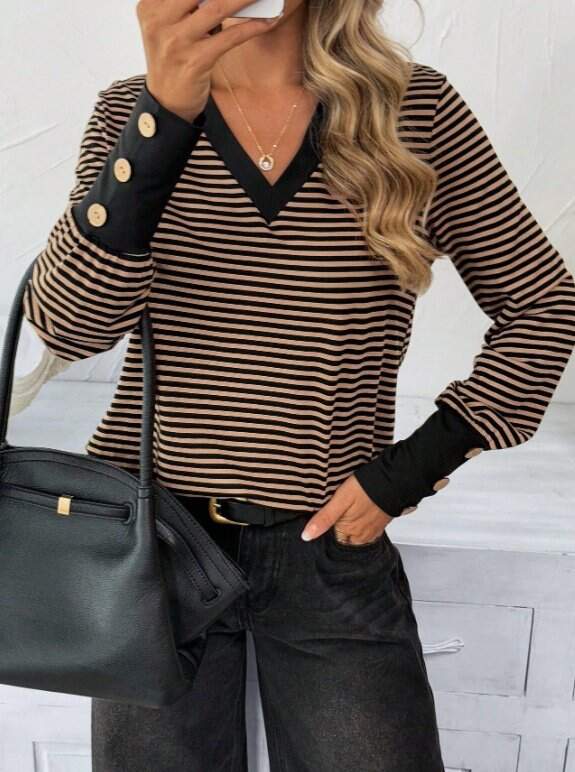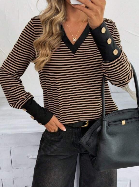 Kadın Uzun Kollu V Yakalı Desenli Süprem Bluz