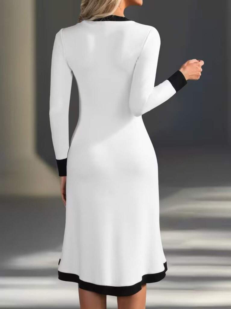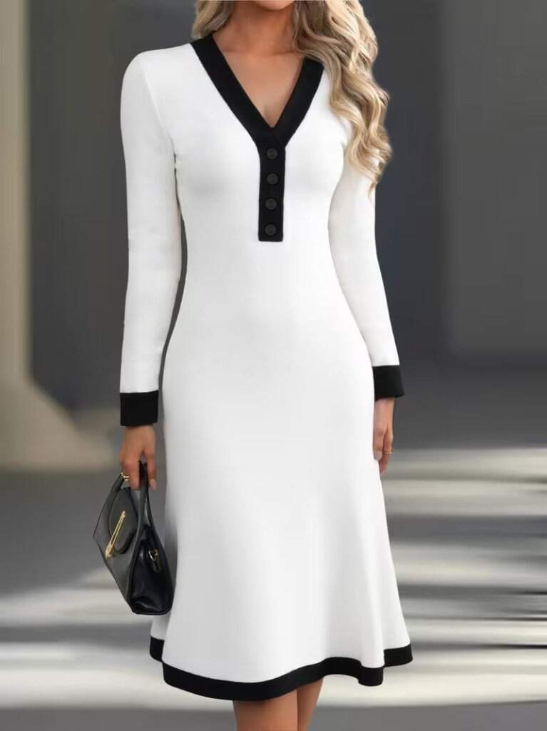Kadın Uzun Kollu V Yakalı Düğmeli Midi Modal Elbise