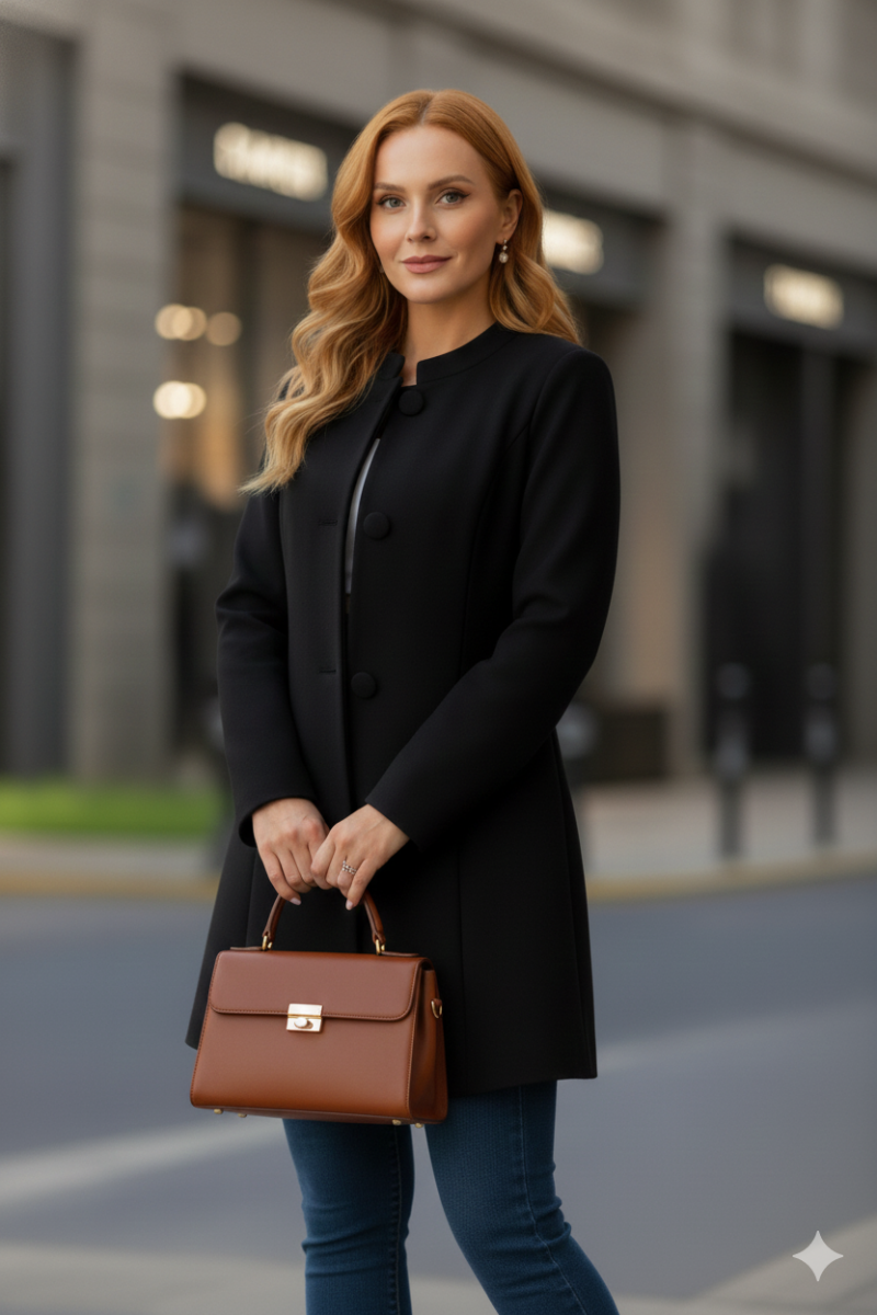 Kadın Uzun Kollu Yakalı önü Düğmeli Ithal Kaşe Astarlı Kaban