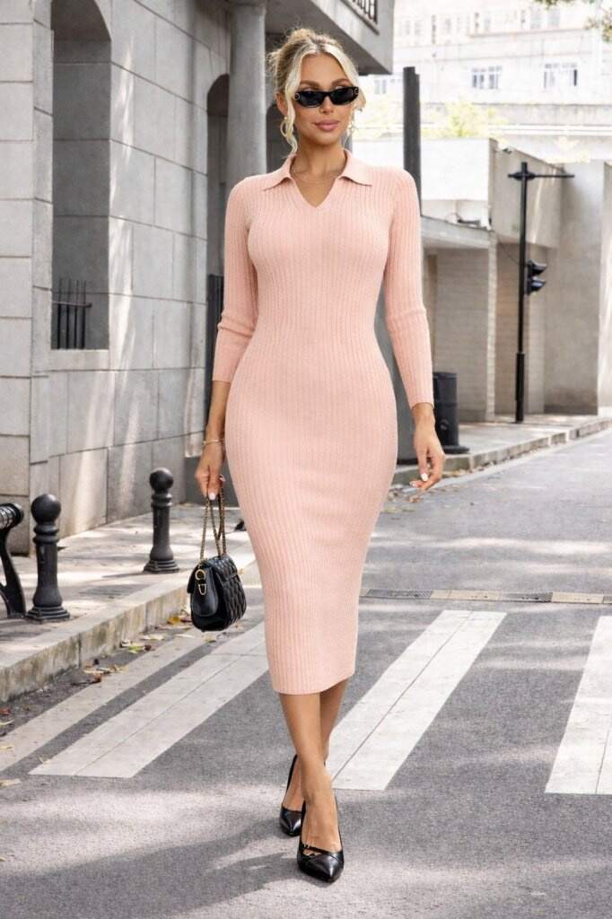 Kadın Uzun Kollu Yakalı Triko Elbise