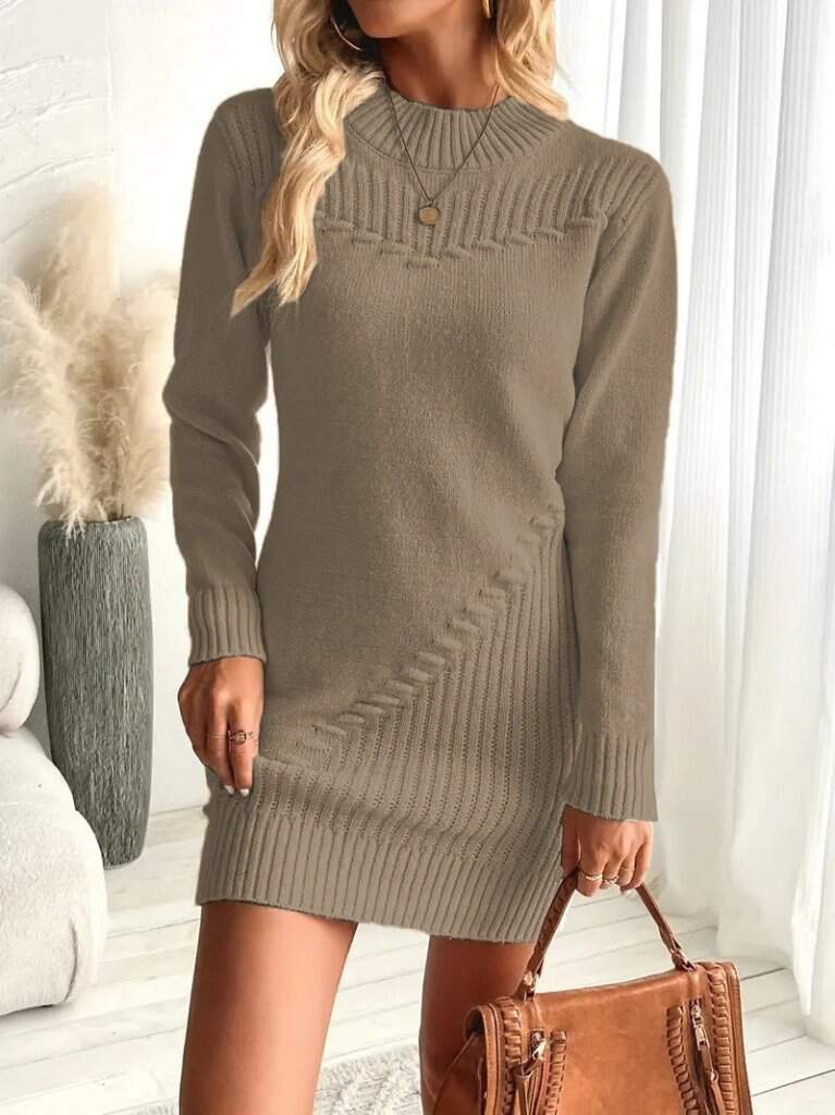 Kadın Uzun Kollu Yuvarlak Yaka Mini Triko Elbise