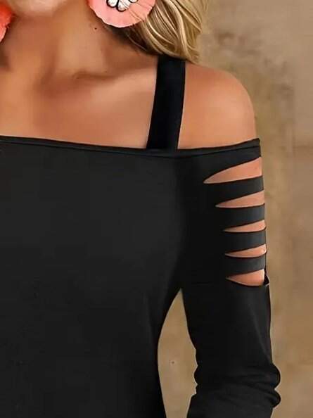 Kadın Uzun Lazer Kesik Detaylı Askılı Viskon Iki Iplik Bluz