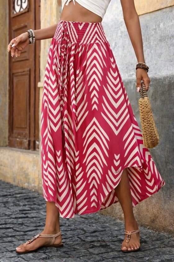 Kadın Yüksek Bel Beli Lastikli Bağcıklı Yanlardan Açık Uzun Süprem Etek