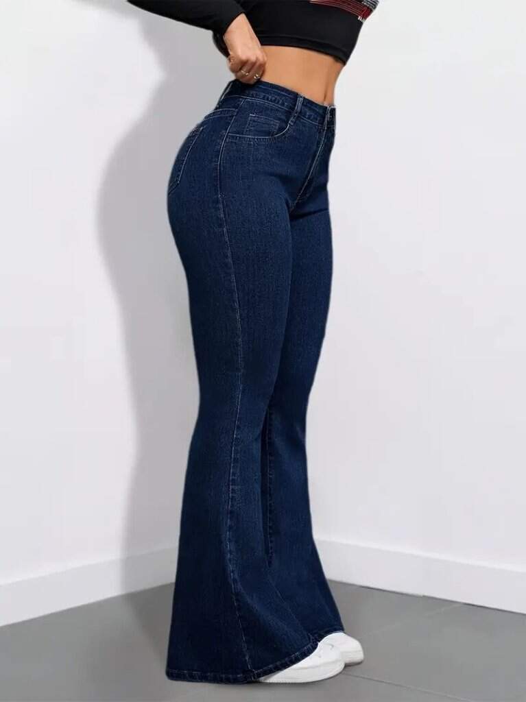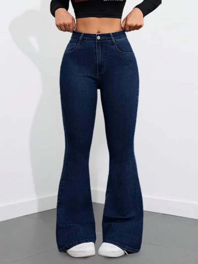 Kadın Yüksek Bel Cepli İspanyol Paçalı Kot Pantolon