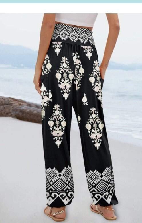 Kadın Yüksek Bel Desenli Lastikli Süprem Pantolon