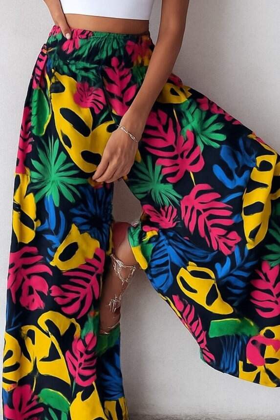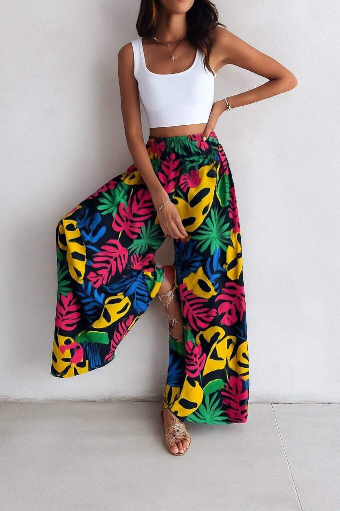 Kadın Yüksek Bel Lastikli Desenli Süprem Pantolon