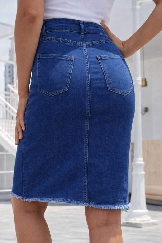 Kadın Yüksek Bel önden Yırtmaçlı Kısa Kot Etek