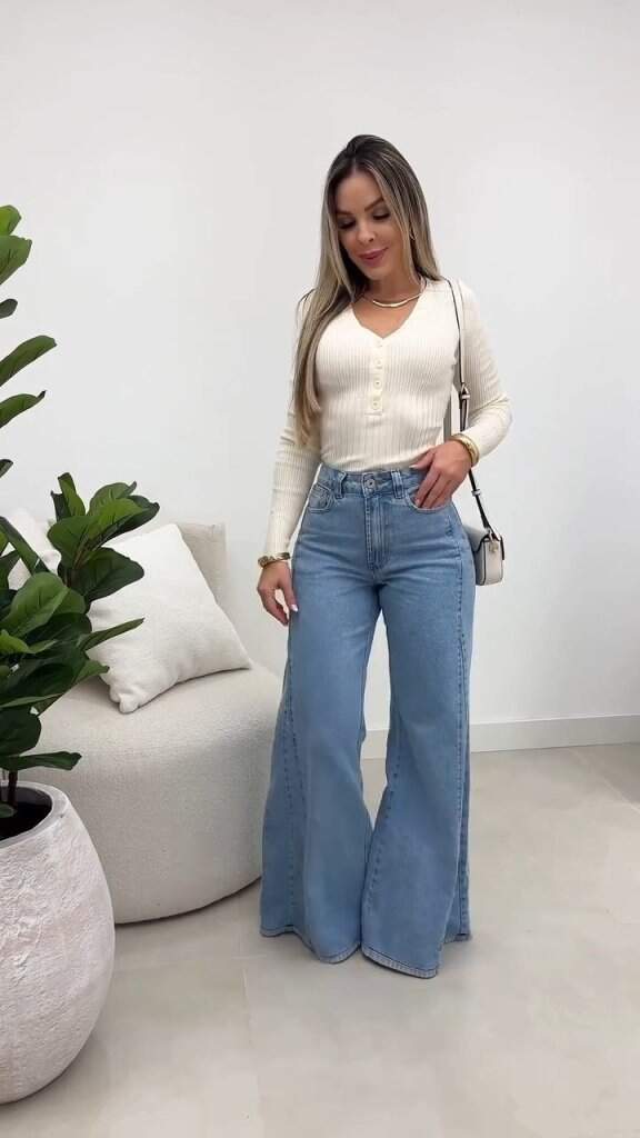 Kadın Yüksek Bel Paçaya Doğru Geniş Kesimli Kot Pantolon