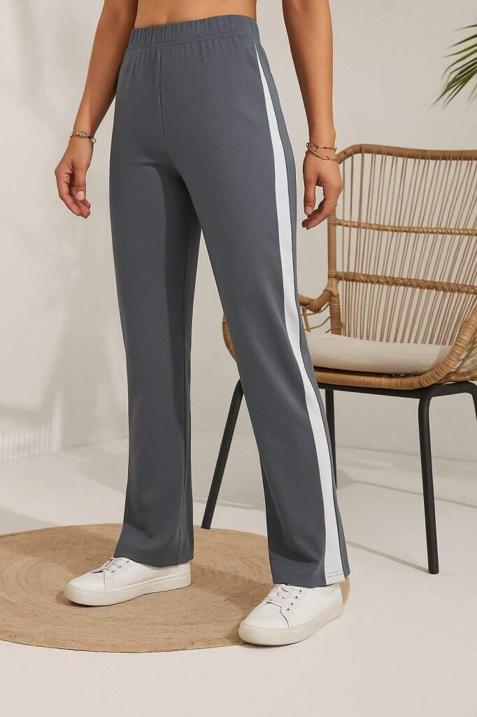 Kadın Yüksek Bel Yan şerit Detaylı Yırtmaçlı Viskon Iki Iplik Pantolon