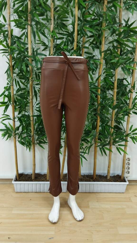Kadın Yüksek Bel Yanlardan Incili Yırtmaçlı Uzun Deri Tayt