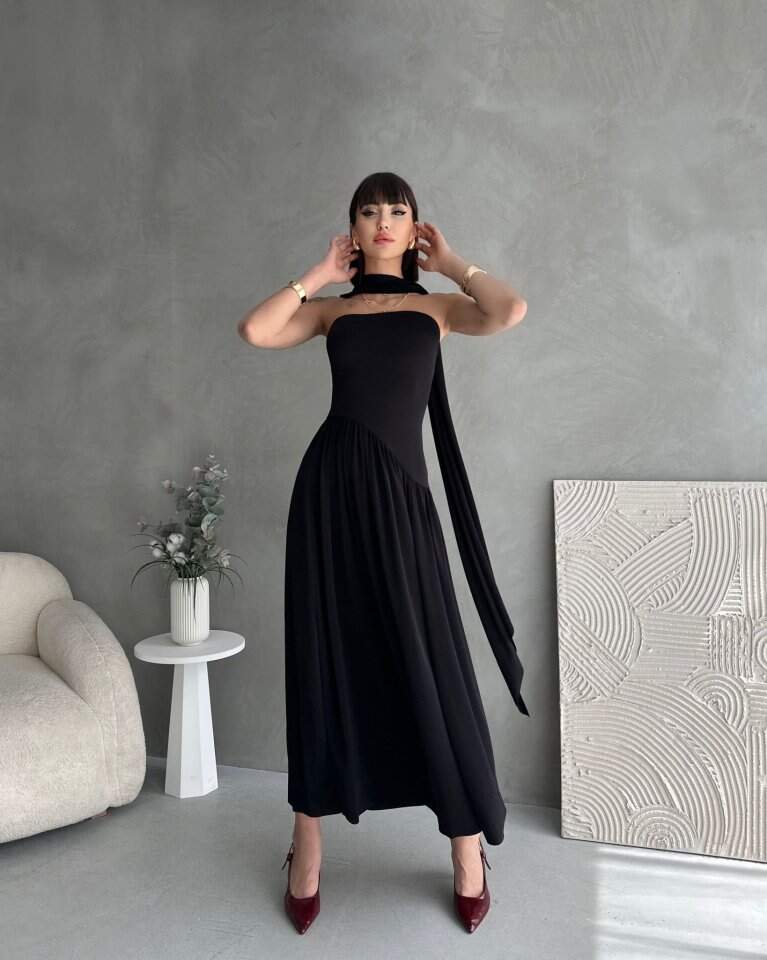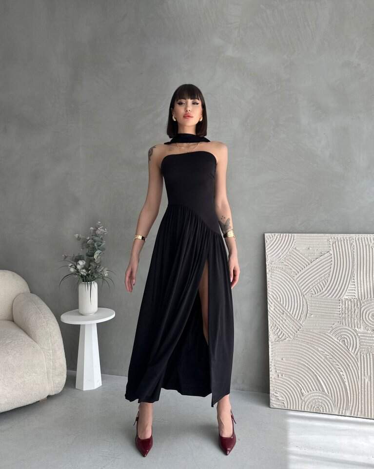 Kadınboğaz Kolsuz Maxi Boy Kalem Elbise