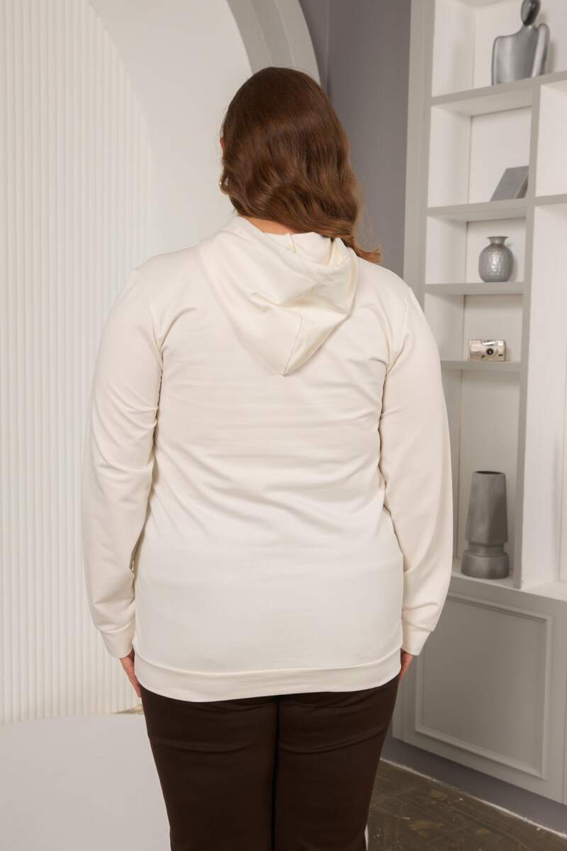Kapşonlu Büyük Beden Beyaz Sweatshirt