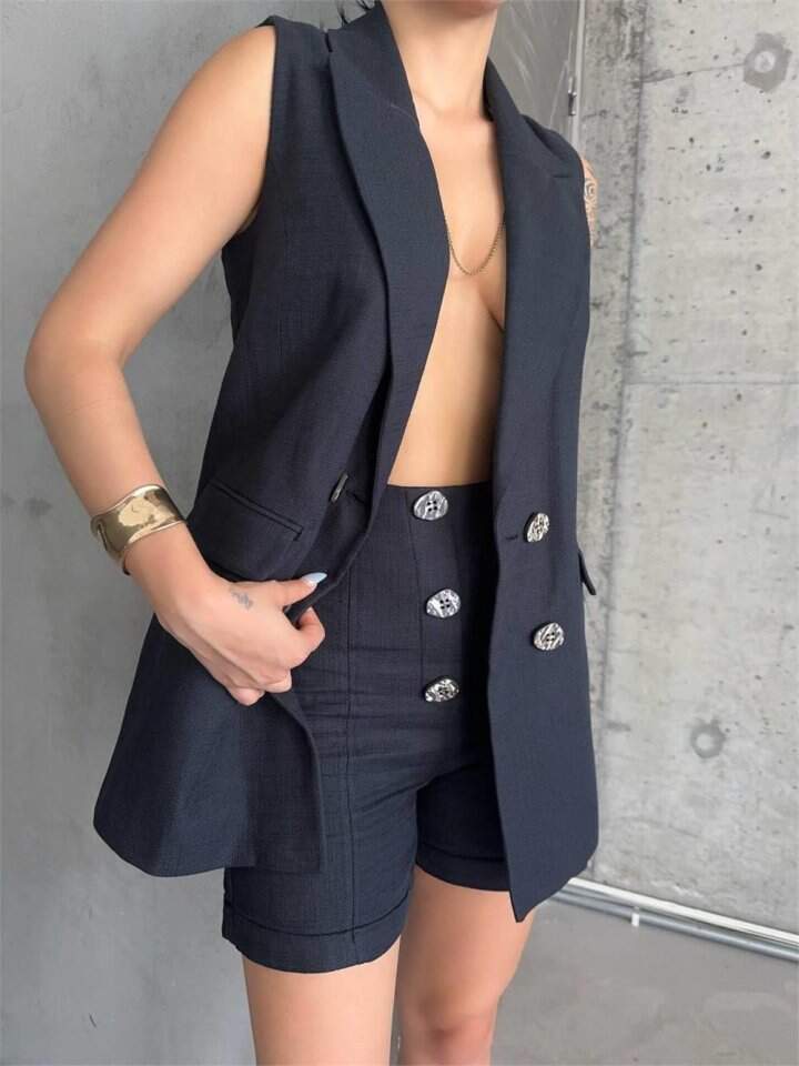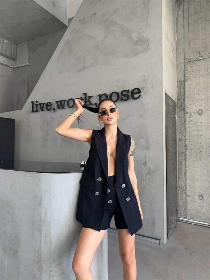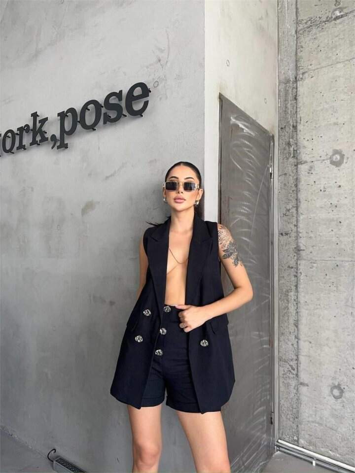 KETEN YELEK - ŞORT TAKIM - Siyah