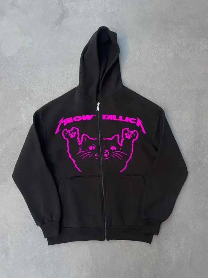 Kışlık Baskılı Fermuarlı Kapüşonlu Hırka - Siyah