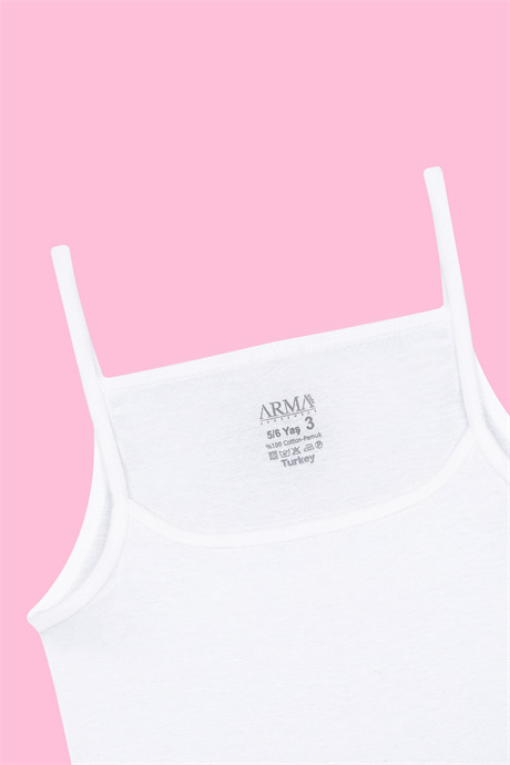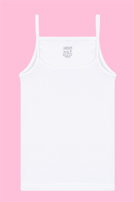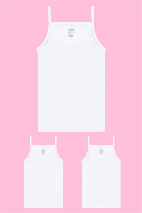 Kız Çocuk İp Askılı Atlet Beyaz 3'lü %100 Pamuk Ribana Yumuşak ve Esnek Kumaş