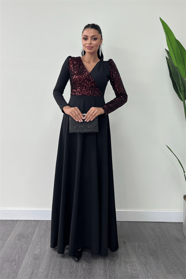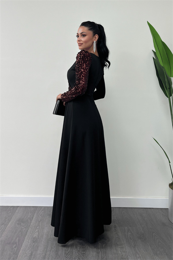 Krep Kumaş Payet Detaylı Elbise