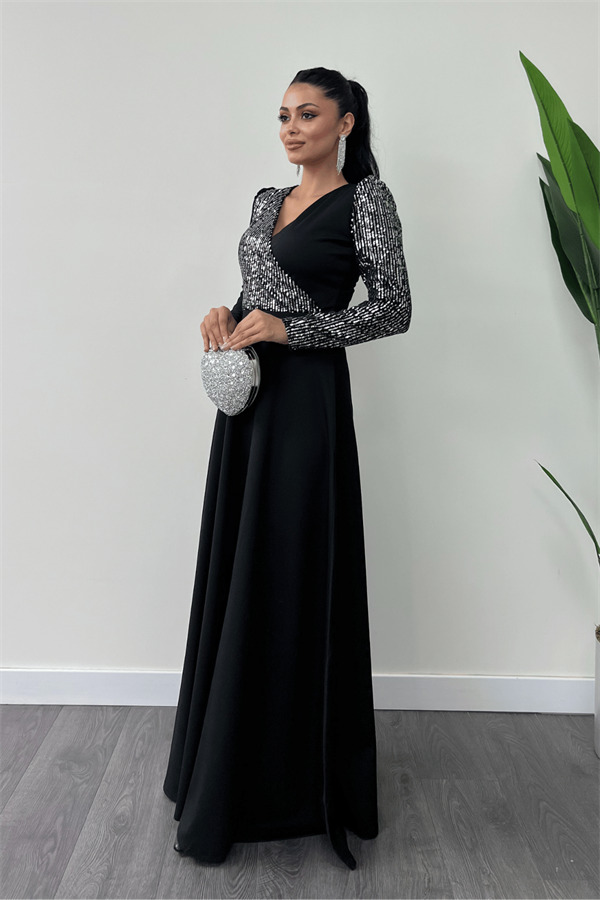 Krep Kumaş Payet Detaylı Elbise