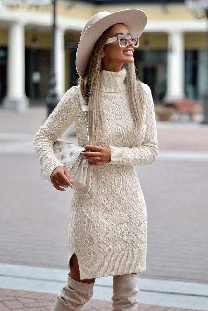 Loren Yünlü Motifli Midi Boy Triko Elbise