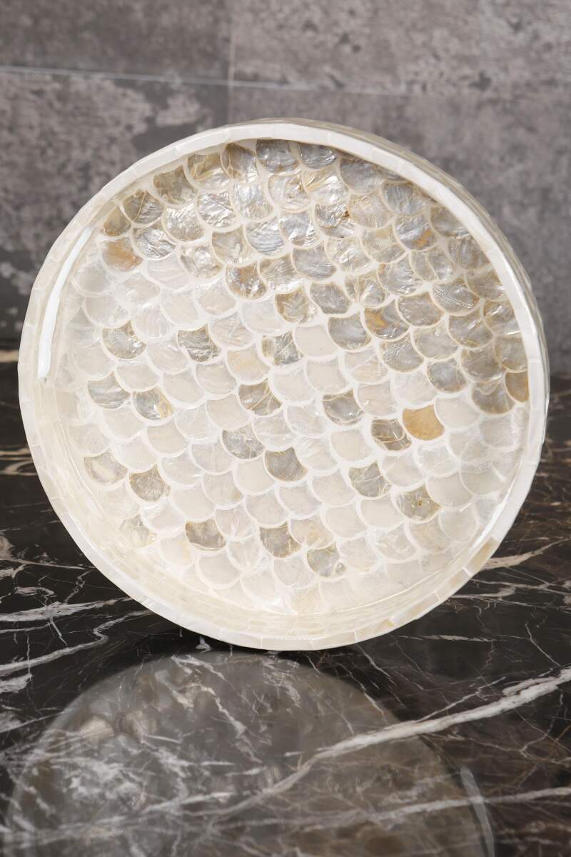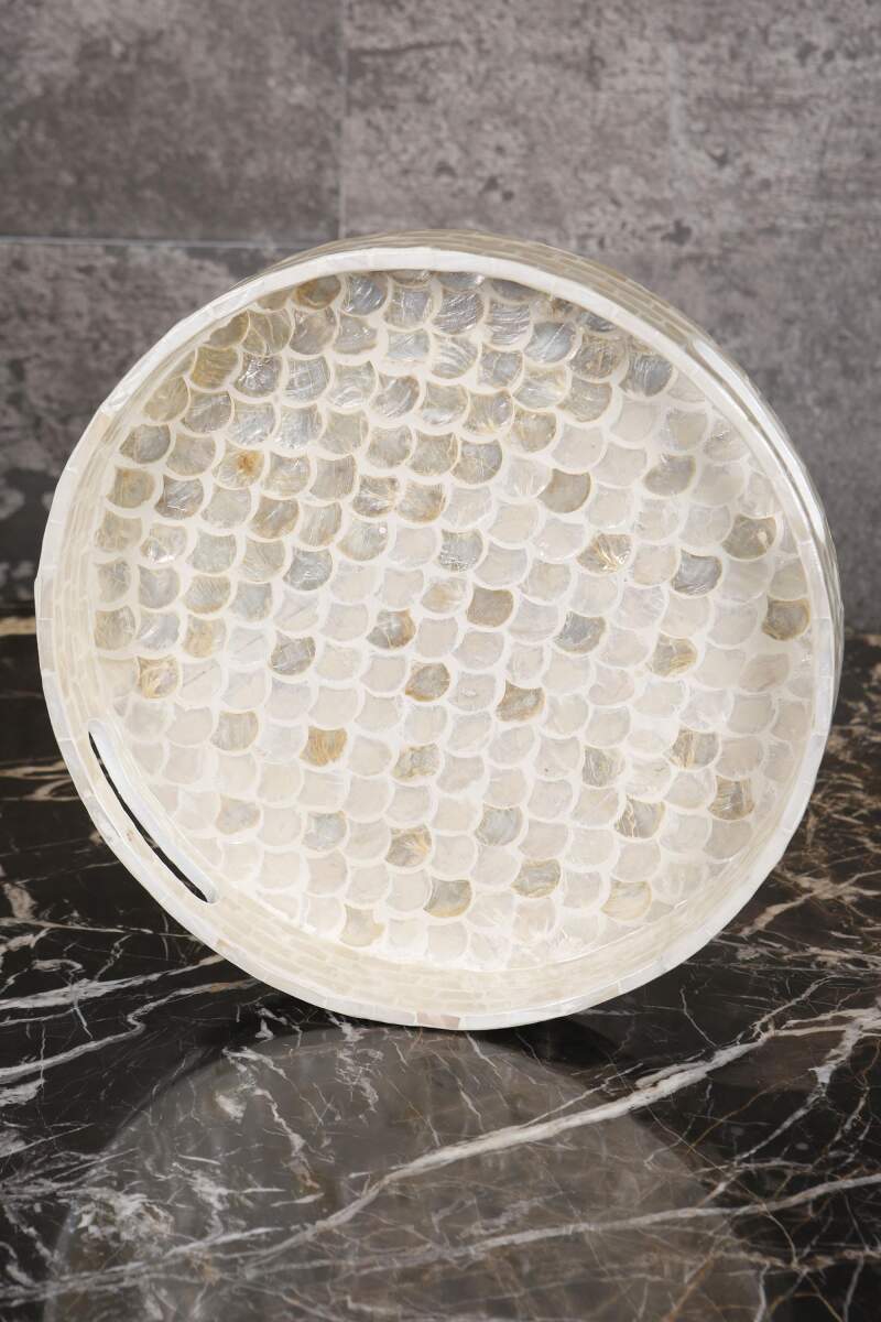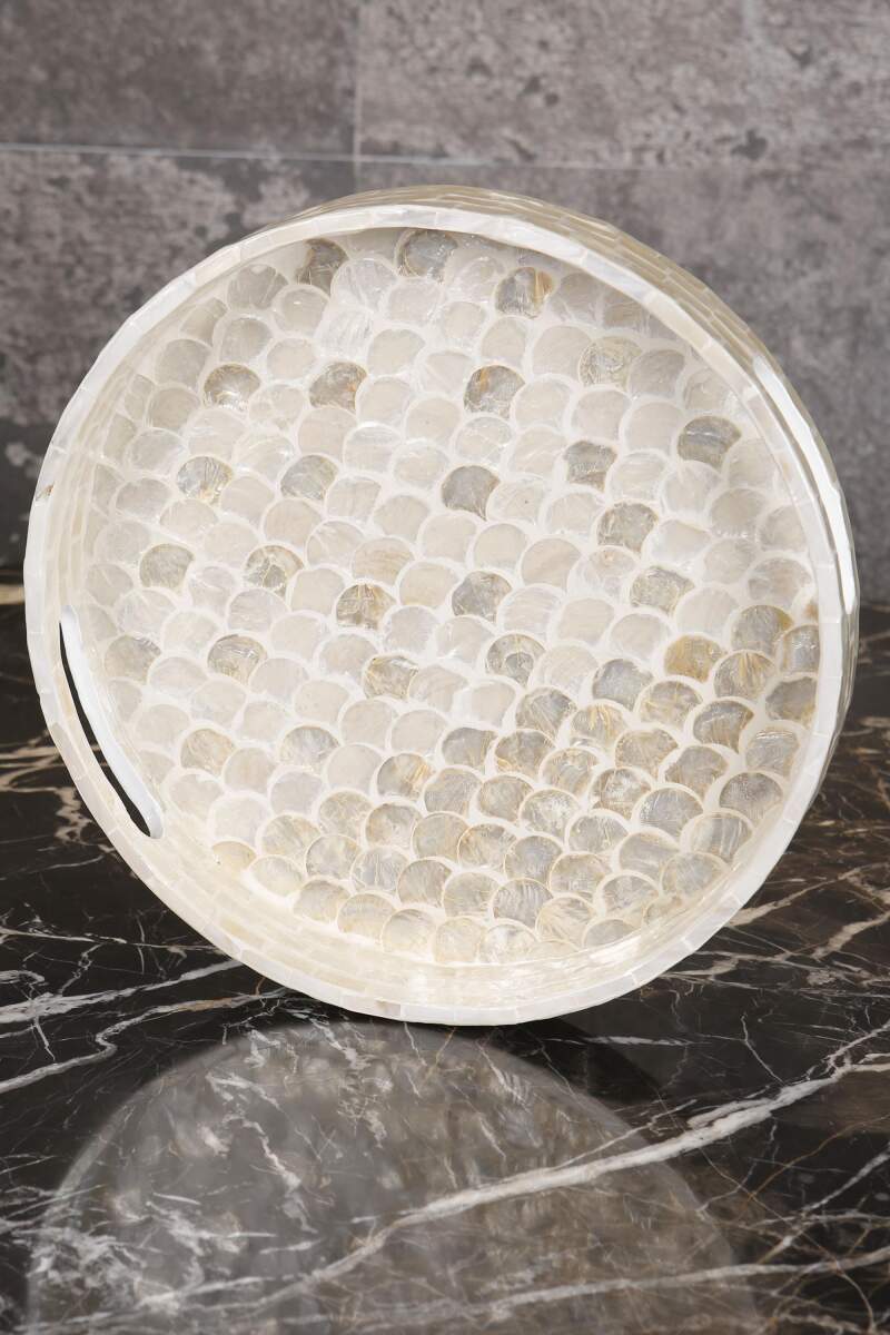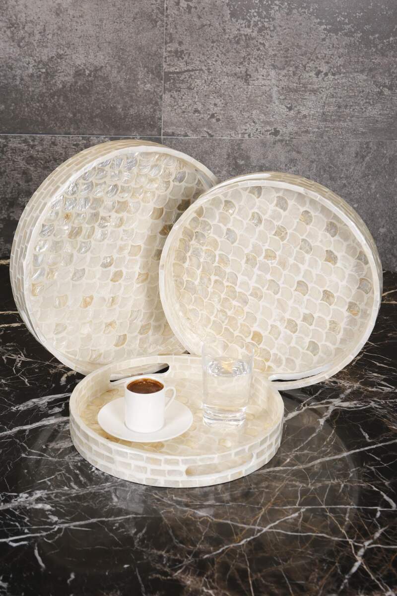 Sedefli 3'lü Krem Sedef Detaylı Tepsi Seti