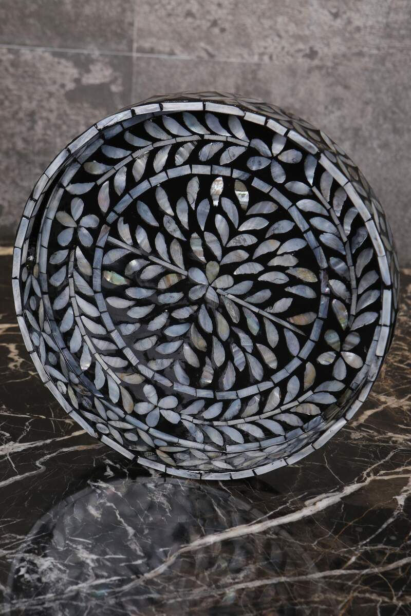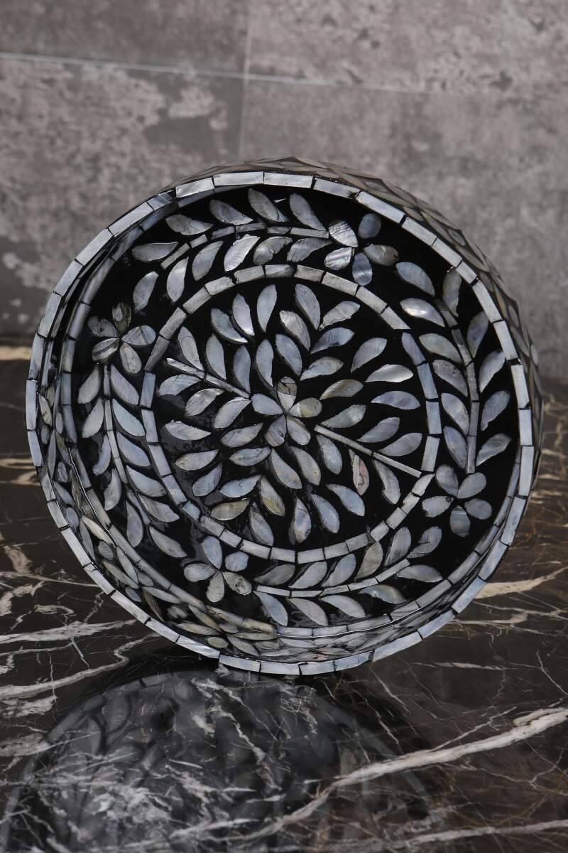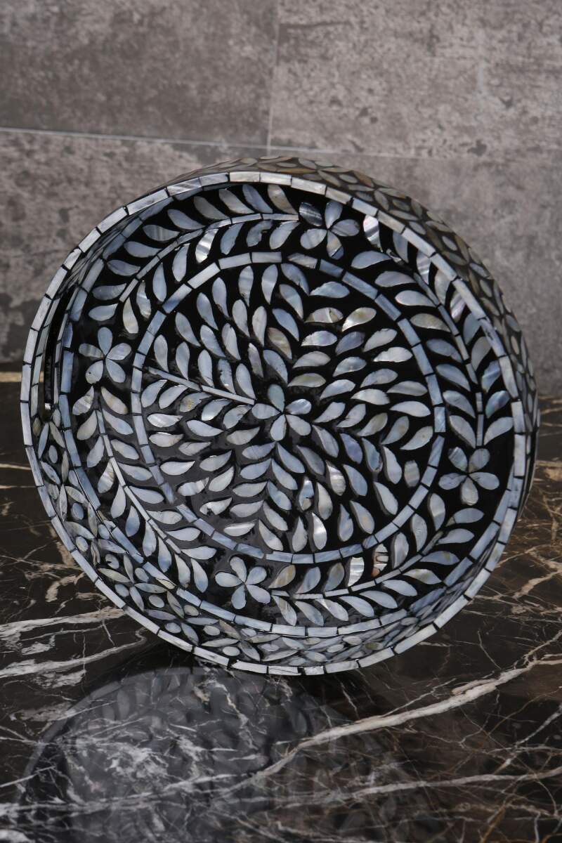 Sedefli 3'lü Siyah Sedef Detaylı Tepsi Seti