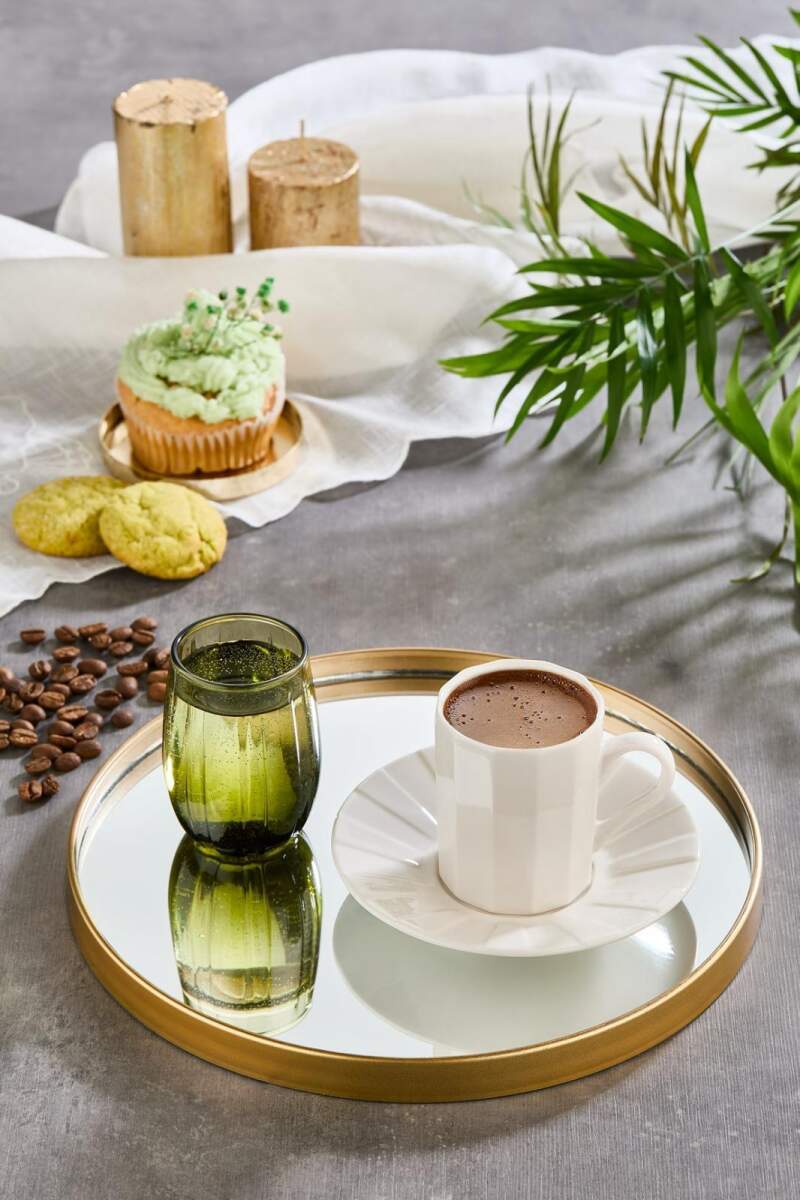 Yuvarlak Aynalı Gold 24x24 İkramlık Kahve ve Çay Sunum Tepsisi (Çok Amaçlı)