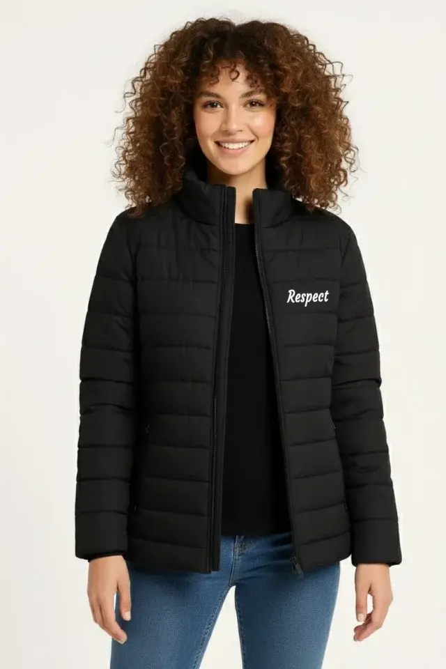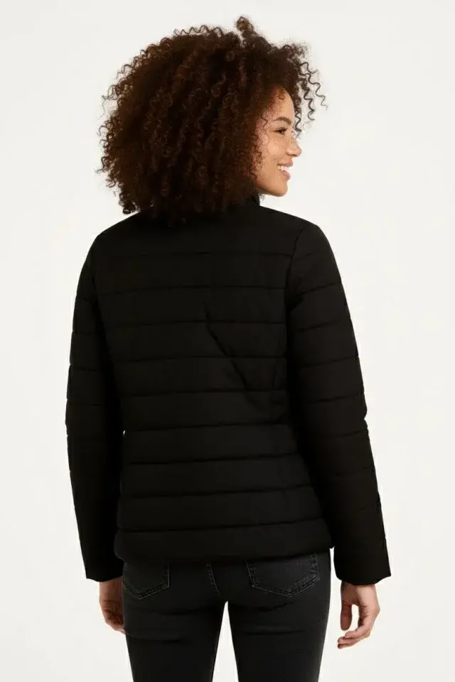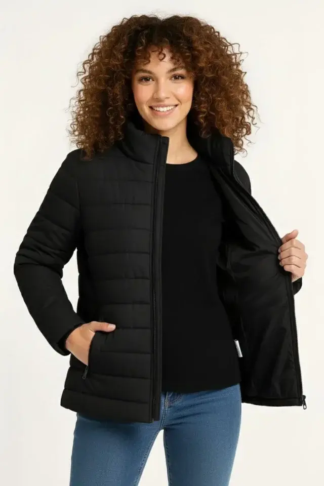Mikro Su İtici Kapitone Baskılı Astarlı Fermuarlı Bomber Mont - Siyah