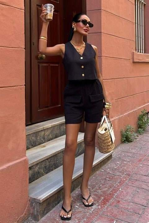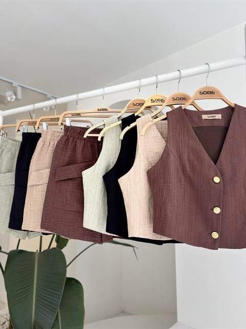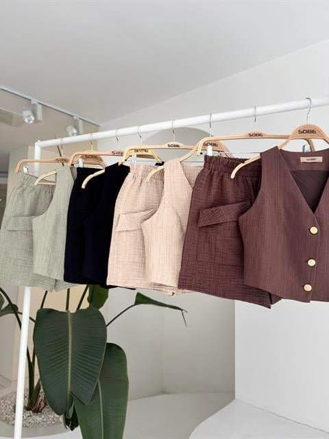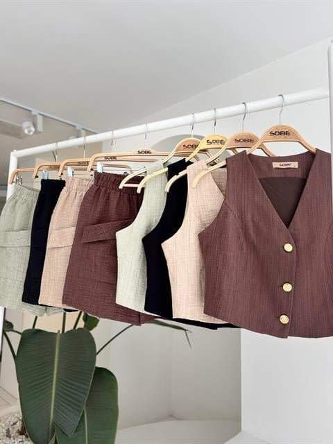 Mini Yelekli Şortlu Keten Takım 10176-08
