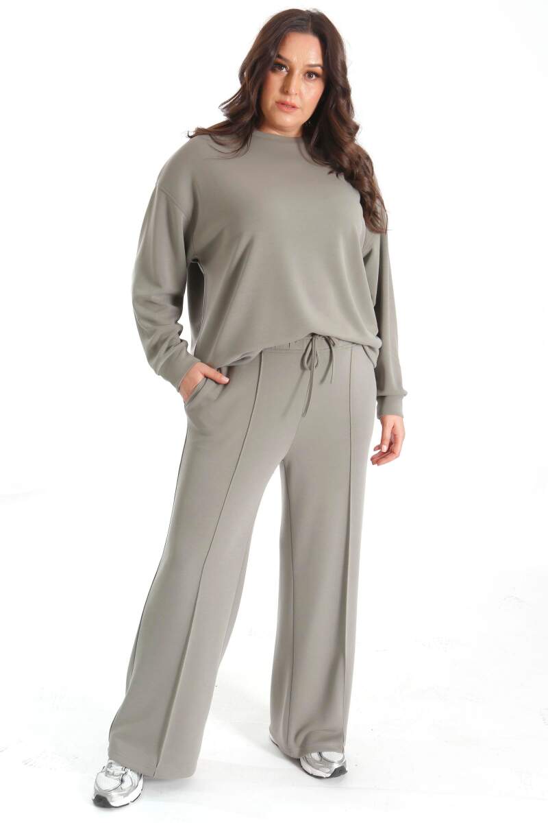 Şık tasarımıyla günlük hayatınızda size konfor sağlayan harika büyük beden Haki eşofman takımı.İster evde dinlenirken ister spor yaparken rahatlıkla kullanabileceğiniz rahat kalıp eşofman takımı.Pamuklu kumaşı ile daha özgür, aktif ve ferah hissedin.