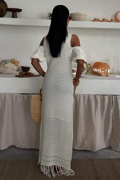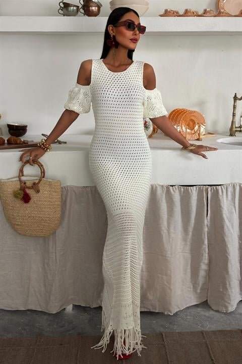 Omuz Detaylı Etek Ücü Püsküllü Triko Elbise 2862