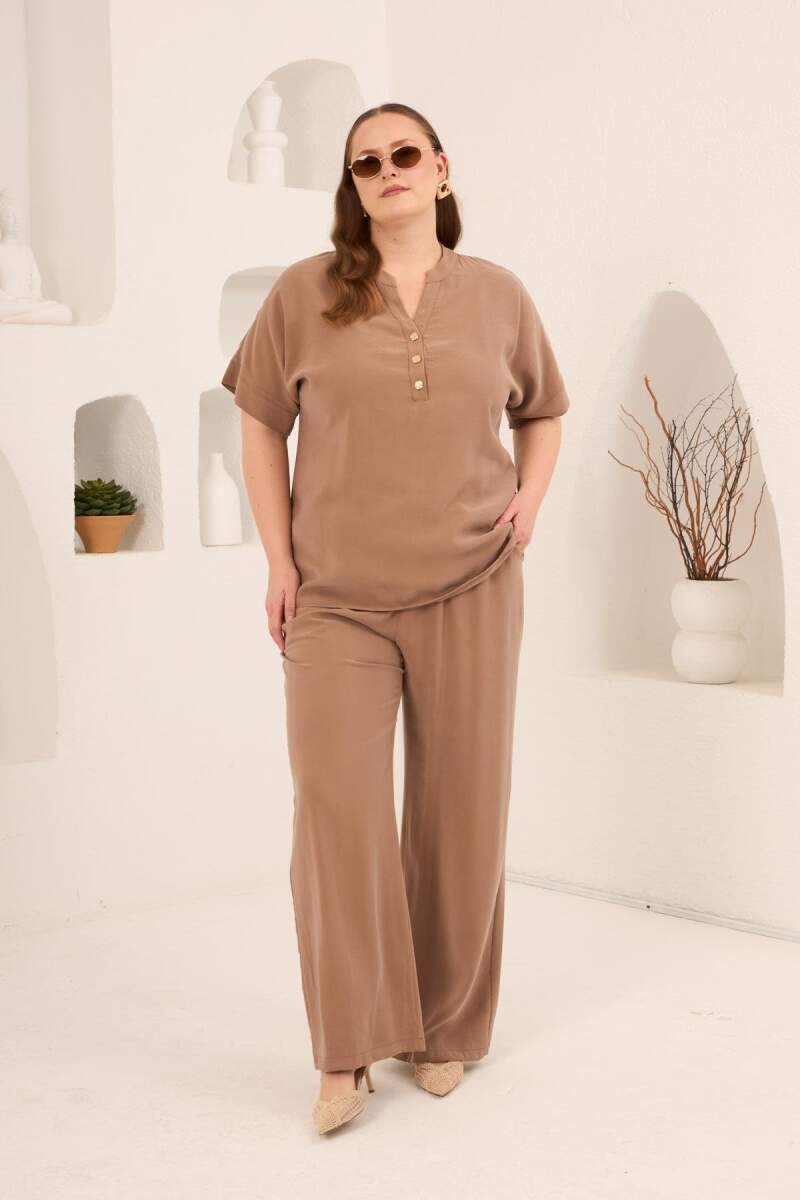 Ön Düğmeli Büyük Beden Modal Bluz Camel