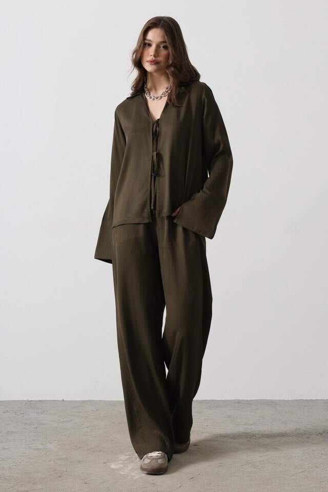 Önden Biyeli Bluz Ve Pantolon Takım - Haki