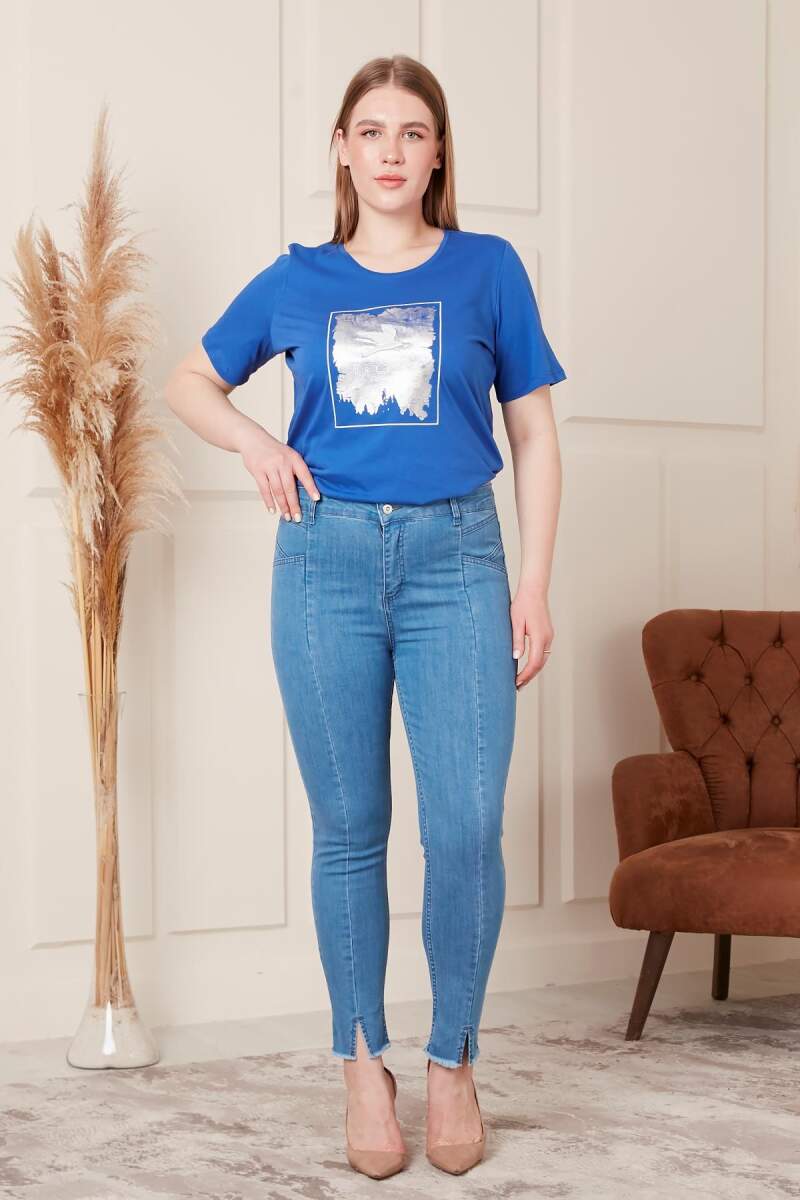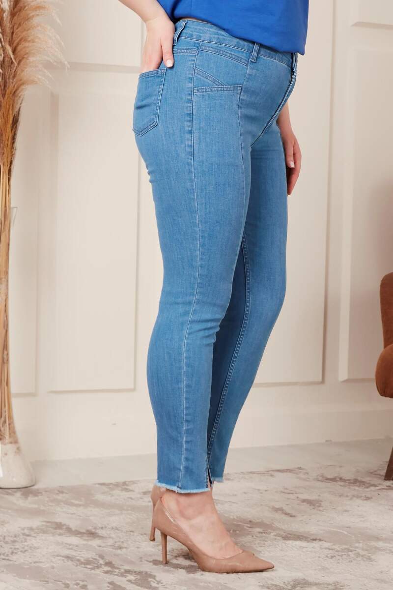Paça Detaylı Mavi Büyük Beden Kot Pantolon