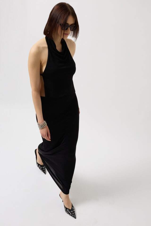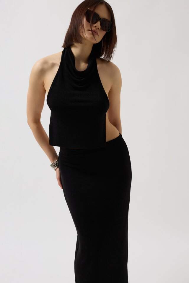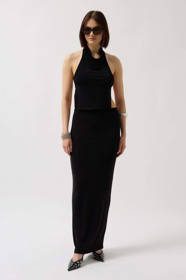 Parlak Kumaş Maxi Etek