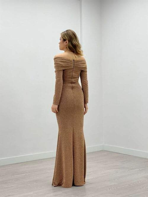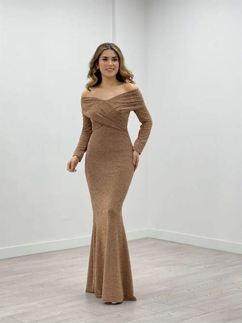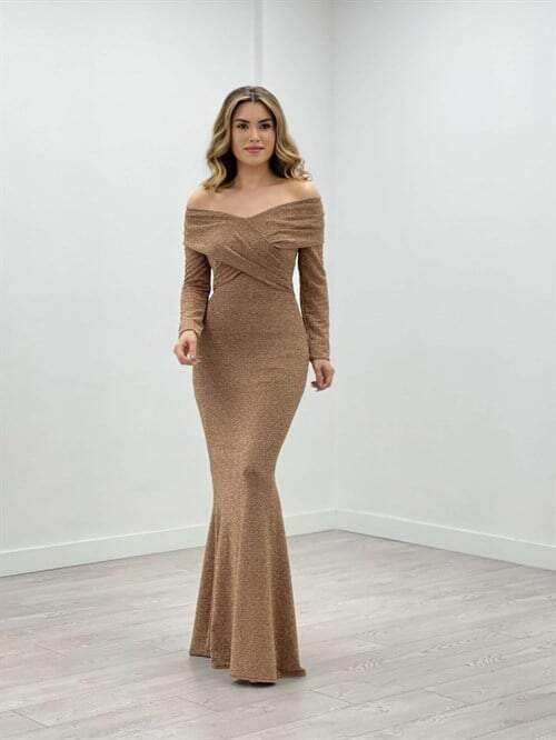 Pırıltı Kumaş Kayık Yaka Balık Elbise