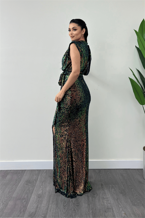 Pul Payet Kumaş Büzgü Detaylı Abiye Elbise - BRONZ