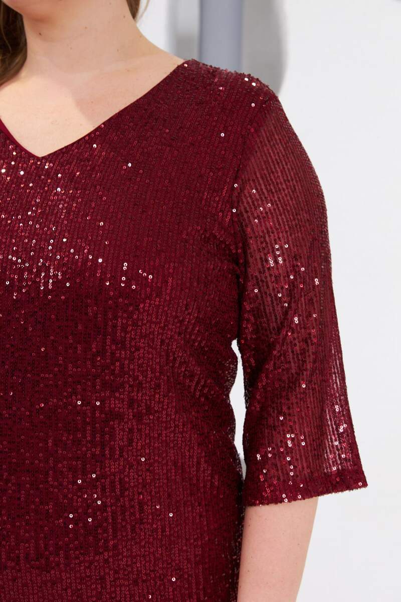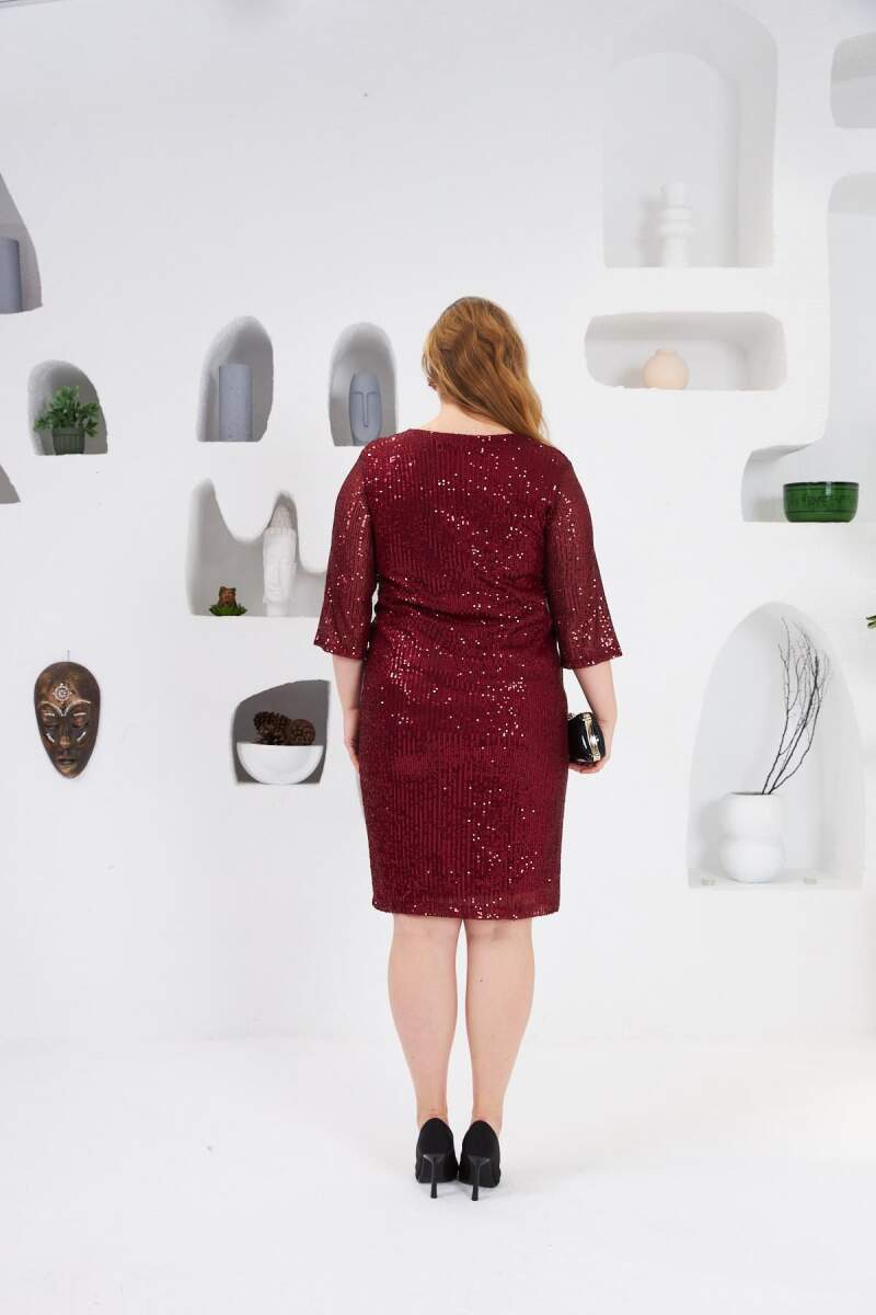 Pul Payetli Büyük Beden Abiye Elbise Bordo