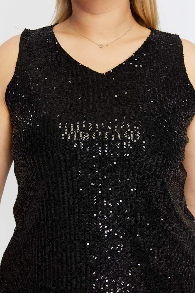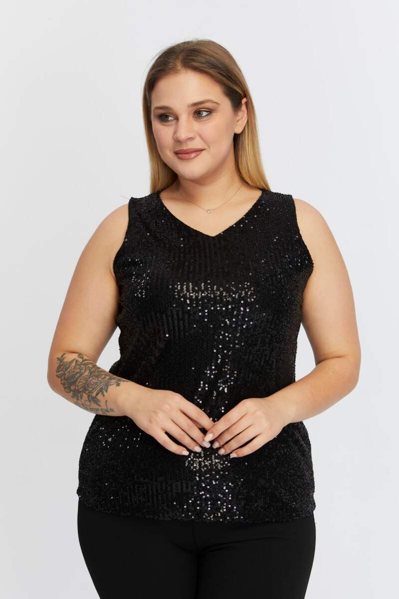 Yeni Yıl Yaklaşırken Özel davetlerden günlük şıklığa kadar her anınıza eşlik edecek Pul Payetli Büyük Beden Sıfır Kol Siyah Bluz, zarafeti ve konforu bir araya getiriyor. Parlak pul detaylarıyla modern bir dokunuş kazanan bu bluz, sıfır kol tasarımıyla her ortamda ideal bir seçim sunuyor. Siyahın asaletini taşıyan bu ürün, hem pantolonlarla hem de eteklerle kolayca kombinlenebilir.